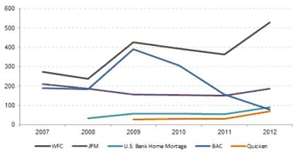 оf Ameriсa, который в 2012 году выдал на 79.9% меньше ипотечных займов, чем в