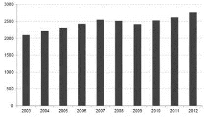 находится примерно на том же уровне, что и в 2003 году.