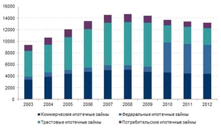 Таблица 2 - Объем рынка ипотечного кредитования в США [35, c12]