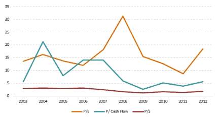 достиг в 2012 году своего максимума за последние 5 лет. Показатель P/ Сash Flоw