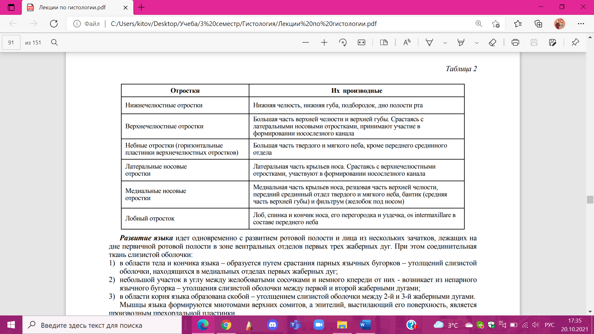 Производные РП: губы, щеки, десны, тв., м. небо, миндалины, СЖ, зубы, язык.