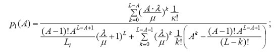 Процесс продолжается до тех пор, пока вероятность р(А) при L = А + к не превысит p∗. В этом случае общее число автоматов, необходимых для обслуживания пассажиров, равно L, из них к - резервных.
