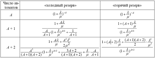 «холодный резерв» - в любой момент времени включено не более А автоматов;