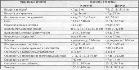 сенситивные периоды. Как видно из таблицы 1, приведённой ниже, координационные