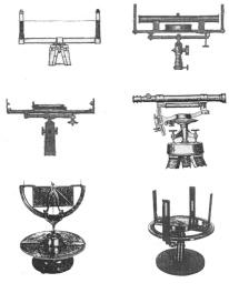 круглой буссолью; D - оптический нивелир середины XIX; Е - теодолит с визирами