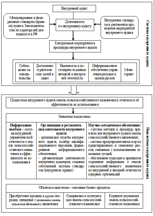 разработать организационные и методические подходы к совершенствованию системы внутреннего аудита в отношении внутренней управленческой отчетности аграрных организаций, отражающей использование земель сельскохозяйственного назначения;