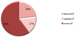 У 60% учащихся уровень коммуникативных и организаторских способностей низкий; у 17% уровень коммуникативных и организаторских способностей средний; у 23% уровень коммуникативных и организаторских способностей высокий.