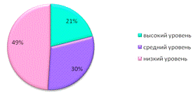 У 49% учащихся низкий уровень внутренней мотивации; у 30% учащихся средний уровень мотивации; у 21% учащихся высокий уровень мотивации учебной деятельности.
