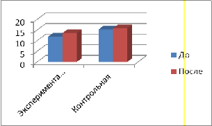 Далее нами было установлено среднее значение по группам (среднее значение - статистический показатель представляет собой, среднюю оценку изучаемого в эксперименте психологического качества), которое составило экспериментальной группе после формирующего этапа 13,5 балла - средний уровень (до 11,8 баллов - низкий уровень), что позволило сделать вывод о положительной динамике развития познавательной активности детей. В контрольной группе среднее значение составило 15,8 баллов (до 15,2 балла), так в данной группе детей по-прежнему отмечается средний уровень познавательной активности (смотреть рисунок 3).