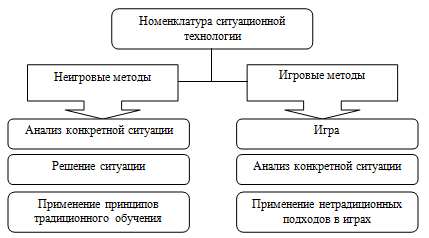 Таким образом, не зависимо от вида применяемых ситуационных игр, необходимо на основании темы урока организовать систему игровых методов, изучая учебный материал через анализ и решение проблемных ситуаций, применяя познавательные, ролевые и деловые игры, а также вводить последующее коллективное обсуждение конкретной ситуации и ее возможные последствия.