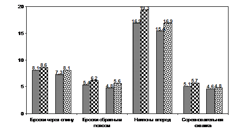 В промежуточной и конечной стадиях эксперимента тестирование проводилось с целью выявления динамики развития физического качества и сравнения результатов контрольной и экспериментальной групп.