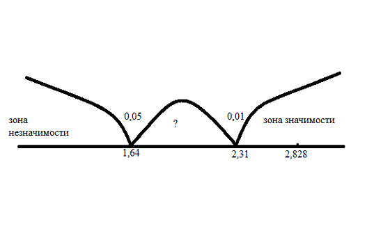 Полученное эмпирическое значение 2,827 находится в зоне значимости.