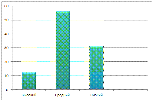 Анализ результатов 1 этапа исследовательско-констатирующего эксперимента показал то, что показатели среднего уровня развития художественного творчества детей в группе преобладают, а высокий и низкий уровни развития сильно отличаются.