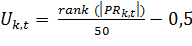 -45, …, +3). Более высоким доходностям приписывается более высокий ранг,