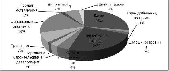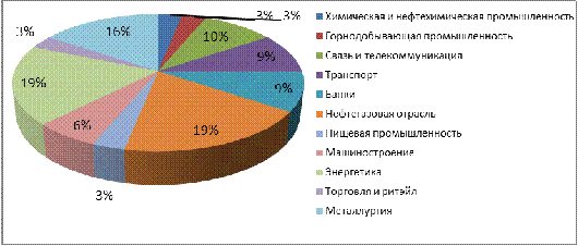 отраслям представлена ниже (преобладает нефтегазовая отрасль -19%; энергетика -