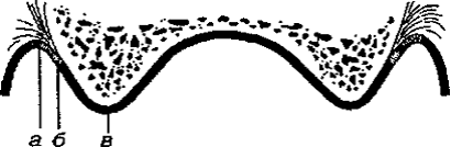 (а), нейтральной зоны (б) и неподвижной слизистой оболочки (в)