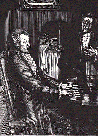 Рис. 1. Иллюстрация "Каменный гость". Ксилография.