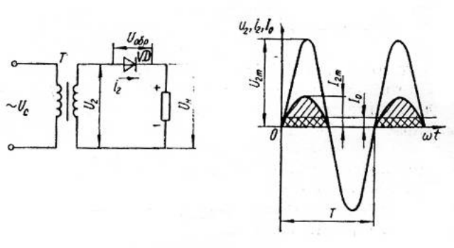 схеме однополупериодного выпрямителя