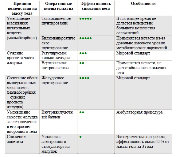 Применяемые в настоящее время виды оперативных вмешательств при ожирении