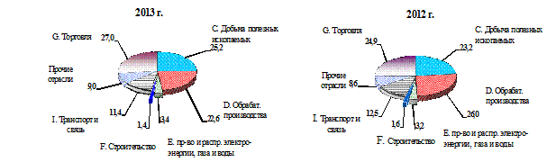 доли сектора добычи полезных ископаемых, торговли при одновременном уменьшении