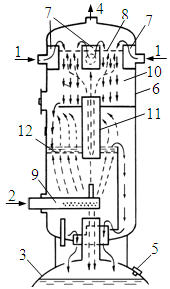 конденсата греющего пара; 5 - подвод каскадно сливаемого конденсата греющего