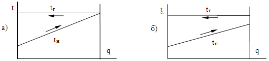 водоподогревателя: а) - с бесконечно большой поверхностью теплопередачи; б) - с