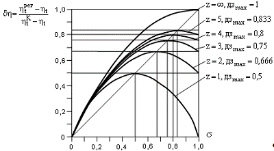 рисунке 23, приведены зависимости КПД от степени регенерации s для различного количества отборов пара при равномерном распределении