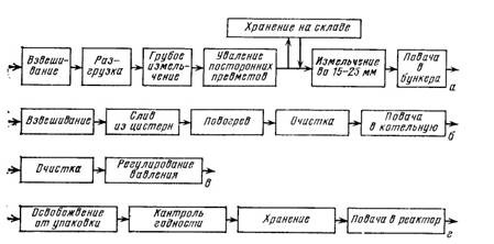 подача топлива в бункеры котельной (в случае использования твердого топлива), к горелкам паровых котлов (в случае использования газа и мазута).