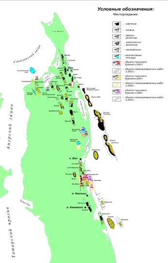 Рисунок 1 Карта размещений месторождений северного Сахалина
