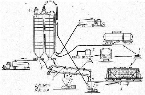 Рисунок 3.4.1 - Схема разгрузки-погрузки транспортных средств на складе цемента.
