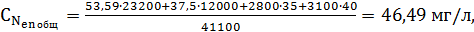 Концентрации в производственном стоке по заданию на проектирование для первого и второго предприятия соответственно равны: азот амонийный 10 и 9 мг/л; азот общий 35 и 40 мг/л; фосфор общий 6 и 7 мг/л.