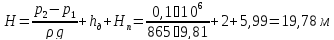 Рассчитаем полный напор, развиваемый насосом (считаем, что насос работает под избыточным давлением 0,1 МПа):