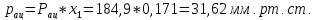 При температуре t = 20°C: Рац = 184,9 мм. рт. ст., Рвод = 17,54 мм. рт. ст.