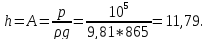 высота столба жидкости, соответствующая