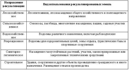 Таблица 1. Основные направления рекультивации и виды последующего использования рекультивируемых земель