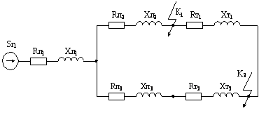 Для расчёта токов короткого замыкания (далее к. з.) используем схему замещения, изображённую на рисунке 1.