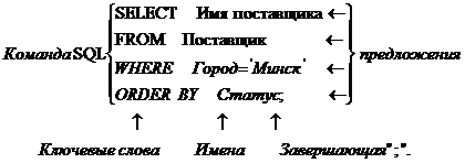 использовать при создании команд и программ. Структура команды SQL показана на