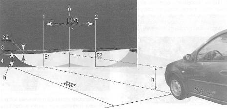Проверка и регулировка света фар производится на снаряженном автомобиле (с полностью заправленным топливным баком, комплектом инструментов и запасным колесом).