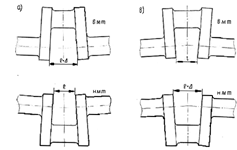 Наличие раскепа (рис.2.3) указывает на прогиб оси вала. Если середина вала будет лежать ниже крайних подшипников, то при верхнем положении шатунной шейки щеки мотыля разойдутся, (рис.2.3,а) и наоборот, если концы вала будут лежать ниже средних подшипников, то щеки разойдутся при нижнем положении мотыля (рис.2.3,б). Следовательно, по расхождению щек можно судить о направлении деформации вала в районе данного мотыля.