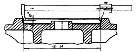 Контроль выработки подпятника по диаметру производить (согласно п. 9.4.1 РД 32 ЦВ 052-2005) на глубине 10 мм от верхней горизонтальной поверхности штангенциркулем ШЦ-III-400-0,1 ГОСТ 166-89, как показано на рисунке 3.