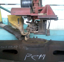 Для наплавки подпятника использовать полуавтоматическую наплавку электродной проволокой диаметром 2 мм в среде углекислого газа.