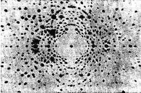 располагались закономерно. Каждое пятно - это след дифракционного луча,