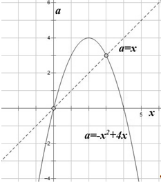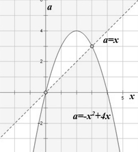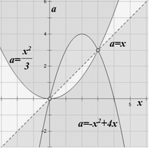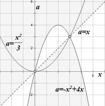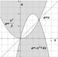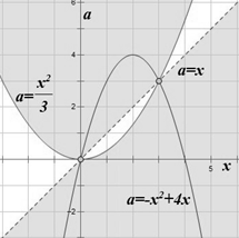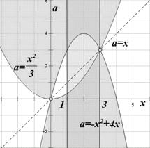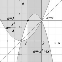 эта прямая имеет с нужной нам областью одну точку пересечения при a=3: