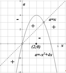 Определимся со знаками. Возьмем точку с координатами x=2;a=0