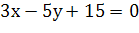 ) Так как по условию нужно построить прямую, заданную общим уравнением: l: 3x-5y+15=0, следовательно, уравнением этой прямой будет являться y=3/5*x+3