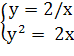 ) Преобразовываем уравнение к виду: y=±√6x