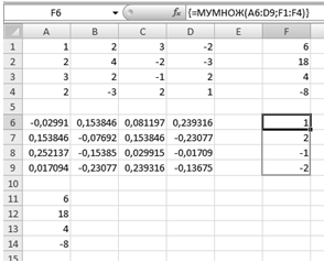 ) В выделенной ранее области появится обратная матрица (рис. 5).