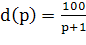 формулой 100/(p+1)^2 .