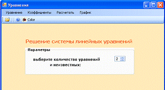 уравнений и неизвестных» пользователь должен задать одной цифрой количество