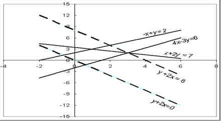 соответствующих ограничений и дающих в пересечении точку максимума: